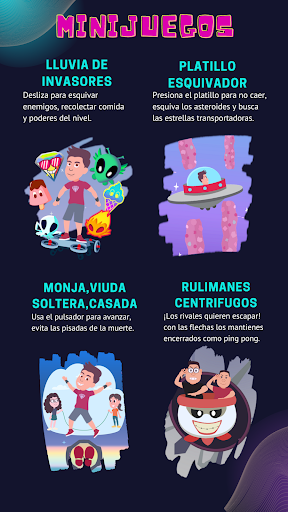 Disfruta de los minijuegos más divertidos para conseguir la mayor puntuación.
