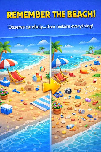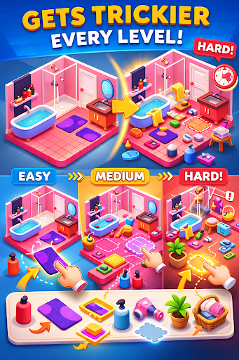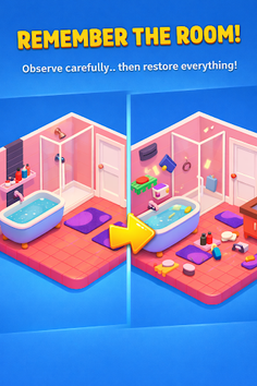 It is not as easy as it seems. You have to remember the set room and then place the jumbled things.