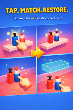 Arrange the things and put them at their right place by tapping on them and then tapping on the original place.
