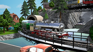 Creating the track layout is very easy with the self explaining menus, which offer always only the possible actions during the use. The tracks can climb up to the hills or go through them with tunnels. The rivers and lakes will be crossed with automatically placed bridges. The length of the track is practically unlimited. You can add as many switches as you want, only your fantasy limits the complexity.
