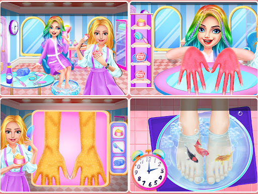 Fashion is very important to all girls and the spa routine is very relaxing, your new friend needs these things, too, so let's have fun. With this app, you can make the young mom look stunning. We all know that all girls deserve the most beautiful and fashionable hairstyle, so with your help, she will get the most interesting hairstyle. First, you have to wash the dress, use all the utensils we have prepared for you, after this task, you have to do the manicure and pedicure. Wash hands and feet with soap and warm water, dry them with a towel, cut the nails and apply super colored nail polish.