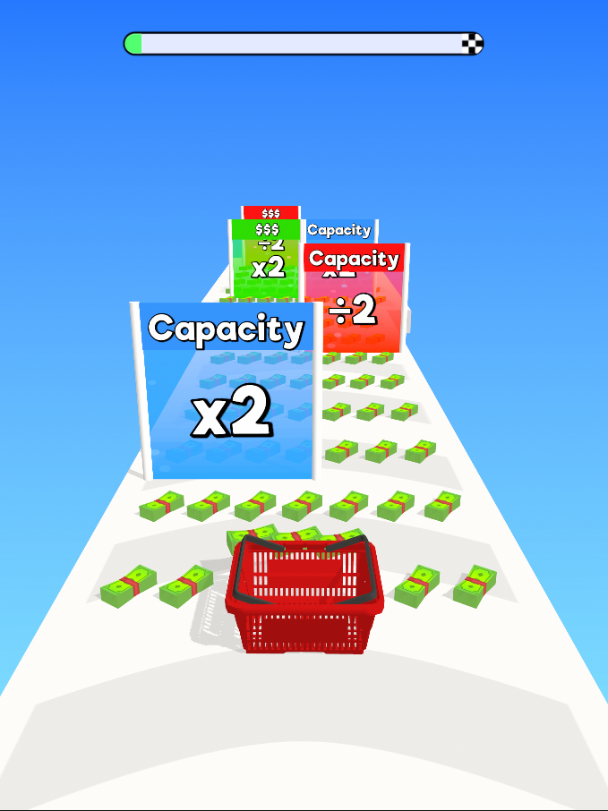 Swipe to move the picker and collect $Go through green gate and expand your width,height,depth!
