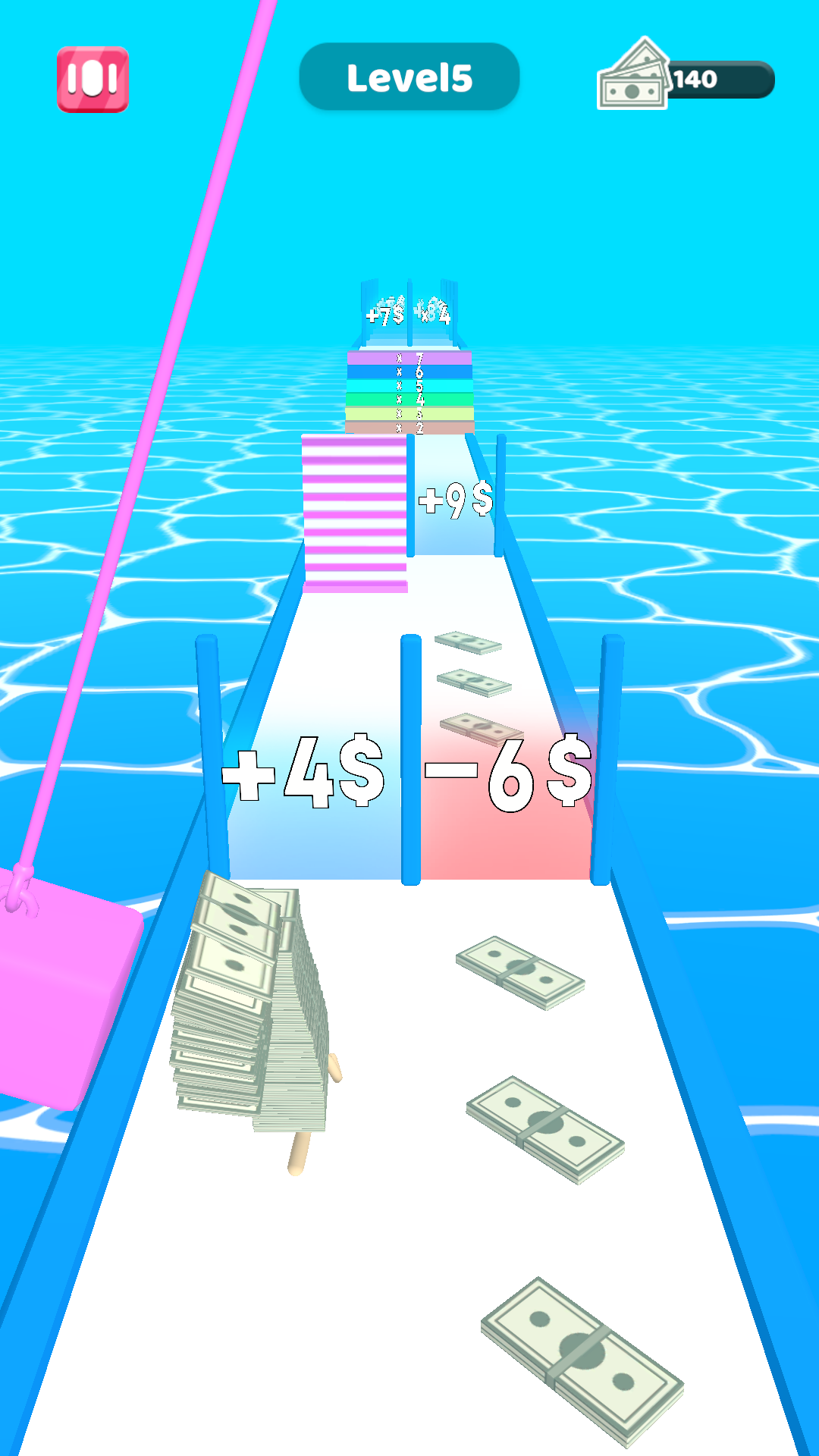 You control a banknote man to run on the road, you can collect the banknotes on the road or multiply them through multipliers, but this may test your mathematical ability.