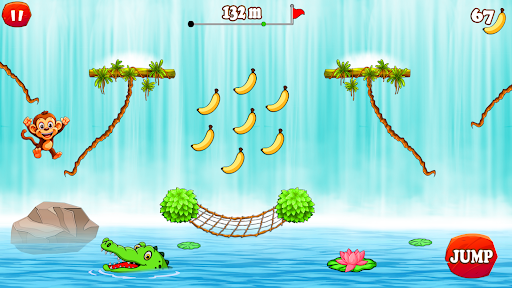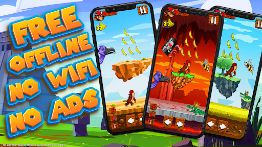 In monkey games you control kong in the jungle and he has to escape the enemies in this offline games. All you have to do is use the arrow buttons in this games that don't need wifi to move left and right, jump to the next platform and avoid to fall out of the screen. In this no wifi games free you will find several enemies like the killer bee, the crocodile, the vulture and many more in this awesome games. You have 3 lives max in the no internet games, you can collect more through the game. Also collect the bananas to score more points and be the most popular games in the store. If you touch the snail the no ads games free will slow donw so is easier for you. There are 3 helpers in this low mb game : one will make you invincible, another will attract bananas to you and the last one in the no data games will stop enemies from moving. After using the helpers you have to wait some time for them to become avaiable again in this fun low storage games.