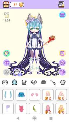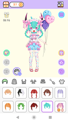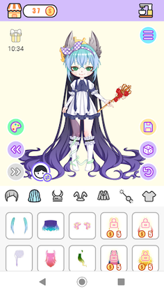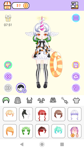 Skin color, hair, face, top, bottom, horn, clothes, sticker, etc.