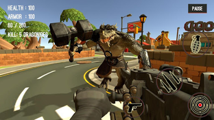 It's a second game from our production where you do such things. Blast your enemies with an MP5, AK47, Desert Eagle, FN SCAR, HK 416, grenades and many more shotguns and rifles Realistic outdoor hd graphics is compareable to visuals of AAA assault army games from high-end PC. Game contains dangerous singleplayer. You can pick from arsenal of weapons - army knife, chainsaw, RPG, sniper gun, m4 rifle, grenade, uzi. You can configure graphics to fit your device, so you can play more smootly and your movement will be more fluent. This game was made on unity engine. Each class contains main weapon, but you can also buy / upgrade other weapons, ammo, armor and bullets to the primal gun. Singleplayer campaign mission consists of simple task, which is to eliminate all dinosaurs from city. After each finished gore game, you gain experience ( xp ) and bounty money.