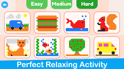- Pixel art puzzle or Square puzzle to create colorful pictures for girls and boys