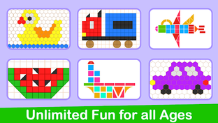 Mosaic Puzzles - Block, Beads & Hexa Puzzle isn’t just incredibly fun to play with fun activities for kids, it can also help children develop better hand eye coordination, ability to focus, recognition of colors and patterns & enhance creativity and imagination. This visual perception game for kids also helps them practice drawing and coloring skills along with pattern designing.