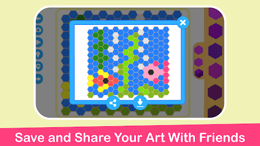 Each beautiful hexagon art you recreate can be turned into pic. Recreate these hex arts in a fun mosaic hexagon puzzle with stunning graphics, ultra-vivid colors, fun and upbeat music! This mosaic game is a color puzzle game for kids, pixel art fun game for families to apply imagination to create mosaic face, mosaic effect patterns and pictures for girls