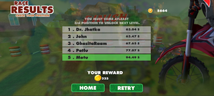 One day Motu challenges to their friend for bike racing. Patlu, Chingum, Dr Jhatka, John and Ghasitaraam accept Motu Challenges. Help Motu to defeat all contested in the racing adventure.
