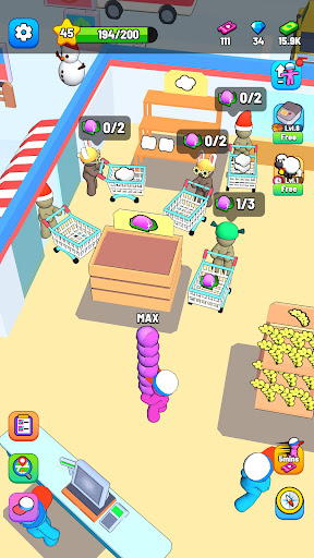 In the Mart part, you have to arrange items in the store on time so that customers can easily do shopping in this store, manage your store perfectly to be the best store manager of this Supermarket game. Upgrade your shelves and machines so that they can hold more inventory. Hire more staff to save your troubles. Collect cash in time to avoid thieves. Hire cashiers and stockers to replenish the shelves with all kinds of tasty products! Upgrade your shopping equipment from time to time to give your customers the best shopping game experience.