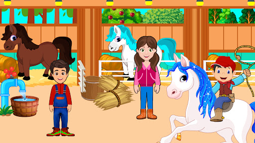Explore your unicorn farm house and do different pony care activities with horses, and create your autism stable life stories in these pretend play animal daycare games. There are so many ways you can care for your unicorn ponies in a horse stable farm. Keep them fed with their favorite foods like lush green grass, and train them for the racing tournament & enjoy pretend town cowboy life.