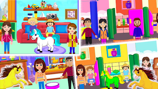 My pony horse stable town life is not a simple animal daycare roleplaying game. This pretend play city story game is a complete package of entertainment for dollhouse decoration games lovers. Explore different locations of city life games and select rooms for decoration and show house decor master skills in these play home design games. Play different kinds of mini games. Solve coloring puzzles and match numbers while playing exciting mini games.