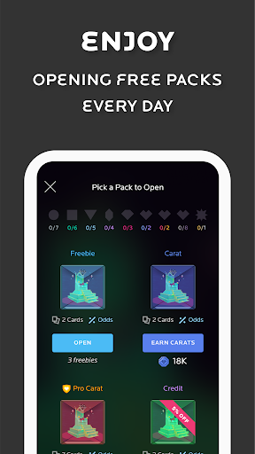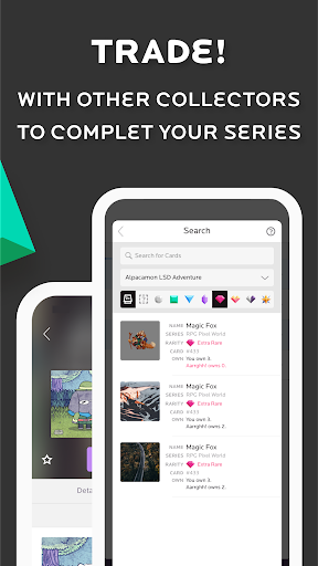 Artists from around the world create original, limited-edition trading card series and offer them for sale and for free to our large and rapidly growing community of collectors. Collectors build collections by opening random packs of cards, trading with other collectors, and discovering new series. Collectors receive free packs daily but can also buy packs if they want to grow their collections more quickly