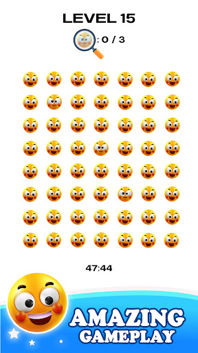 Find The Difference is a challenging, unique, and fun puzzle game. Unleash your incredible power of observation, enhance your focus, and train your eyes. Come and join us for the unique single word search game. Odd 1 out puzzle is a good way to spend your free time smartly. You will have to use your brain, logic and knowledge to pass all levels. Test your brain and catch the odd emoji from the list.