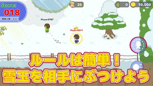 雪合戦ゲームでオンライン対戦を楽しもう!ルールは簡単で、相手に雪玉を当てて得点を獲得しよう。最終的に最も多くの得点を獲得したプレイヤーが勝者となる。1対1で熱く戦うモード「二人対戦」や、定められた時間に自動的に参加する「レート戦」も用意されており、対戦終了後には自動的にランキングに登録される。もし二人対決でマッチングがうまくいかない場合は、自動的にCPU対戦に切り替わる。2人~4人でプレイできる「四人対戦」と、友達と共有するパスワードを入力すればプライベートマッチが可能な「あいことば対戦」も楽しめる。また、CPUとの練習モードも用意されている。さあ、この魅力的なゲームで楽しい対戦を開始しよう!