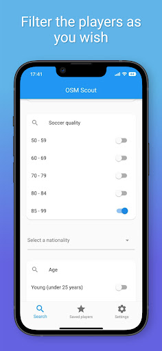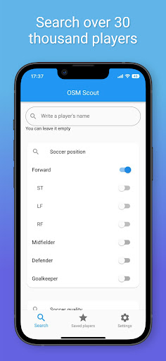 Your search ends here, thanks to OSM Scout - the paramount tool for discovering, evaluating, and acquiring top-tier players. Our app simplifies the scouting process, empowering you to handpick players based on an array of essential criteria, including name, position, quality, age, nationality, and league. Embrace the future of soccer team building with OSM Scout!