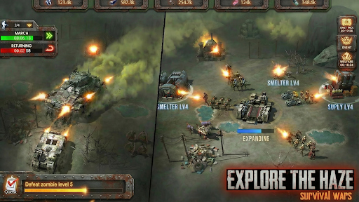 However, a greater challenge has loomed. The knock-on effects of the nuclear explosion have swept the globe, with a highly concentrated gas carrying radioactive material shrouding the atmosphere - the Haze. With a limited view, exploring and accessing resources in the Haze is dangerous and mysterious. But the Haze also offers you a safe haven where enemies can't spot your location without a view. Also, you can send out camping vehicles and build watchtowers to expand your field of vision. In short, the view is the key to winning battles.
