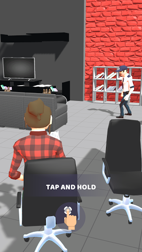 Move the paper on the screen left and right and up and down to move around the office, find the trash can and throw it there!