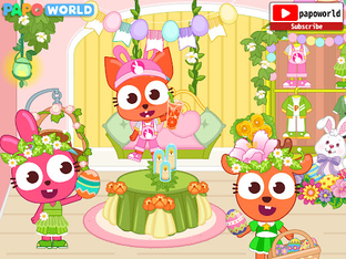 Choose your favorite holiday and enter the room to decorate it first. There are 7 most popular festivals: New Year, Valentine’s Day, Mardi Gras, Easter, Halloween, Thanksgiving and Christmas. With more than 400 pieces of furniture and decorations, you have plenty of choices to mix and match and design a holiday room of your own style! Move around and arrange the items till you are satisfied, and then invite your Papo friends over for a party!