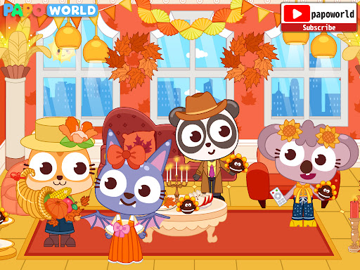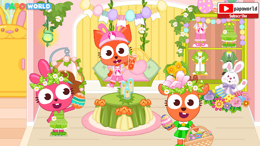 Enter different rooms to experience and enjoy each and every important festival with your Papo Town friends Purple Pink the Bunny and Steve the Lion!
