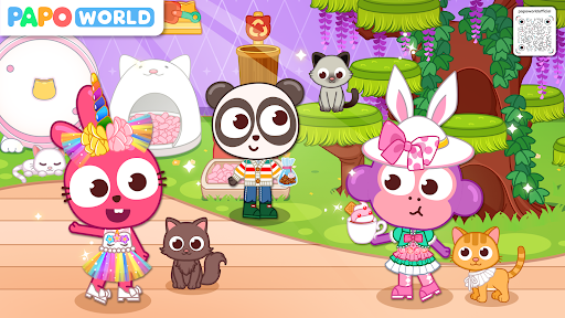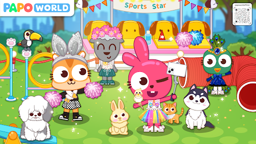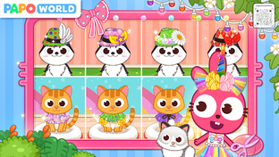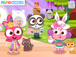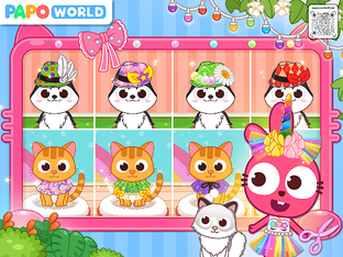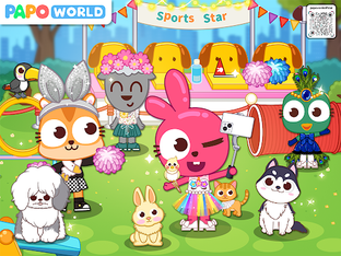 There are 6 popular scenes in Papo Town. You could shop a cute outfit or a collar in a pet shop, cheer up for the most beautiful puppy in a dog contest, enjoy a cup of coffee and stroke the cats in a cat café house, or take a full body examination in a pet hospital.