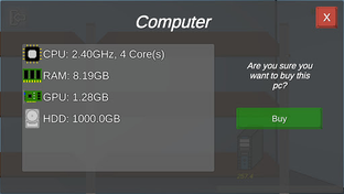 You benchmark computers in benchmark events, time system that starts in year 2000 and moves forward, paying bills, dumpster to find old computers, mini games & internet websites on the computers, many computer components and designs + more coming!