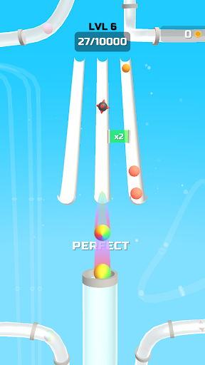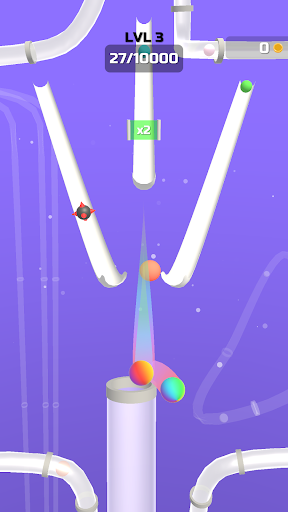 Avoid all the bombs, the ones that are black with red spikes, they will break your pipe therefore you will not collect any more balls and fail the level.