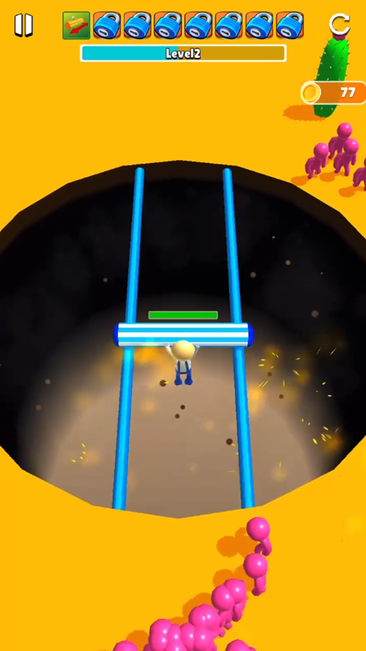 Enhance your survival with upgrades to your push bar size, push force, and power-up duration. To proceed to the next thrilling world, you'll need to size up your bar and slide across a rail.