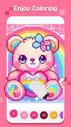 ✔ Coloring by number is simple. Browse pictures, then just tap a color number, and start painting the image. You will always know what color to use and where while playing Pixe coloring games.