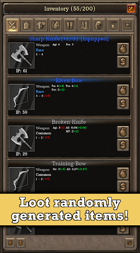 The rule of our RPG game is very simple. Defeat monsters and move to the upper level! Thus, just take it easy while your Legend kills the Beasts - maybe contributing with a Tap, or two. Challenge your opponent and prove yourself a mighty boss. Gather unique items and be stronger! Achieve milestones, complete tasks, and just have fun!