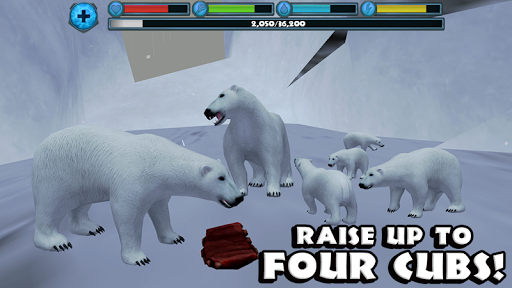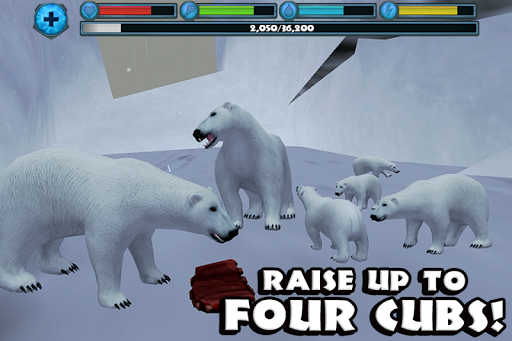 Find another polar bear to bond with and raise your very own family! Breed up to four polar bear cubs and watch them grow in size and strength while they help you survive in the wilderness!