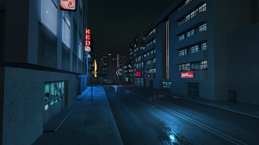 You are in the middle of a city with no-one around, no-vehicles, nothing, just empty with some big buildings.