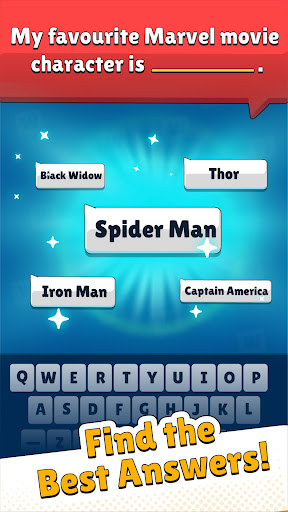 If you are a word game fan, try this challenge, take the quizzes, and discover Popular Words. Find out the most popular answers to short everyday questions in life. Hours and hours of fun are guaranteed with this simple and addictive word trivia game! Get everyone's heads up in your family and ready to play this engaging family game of guessing words to fill in the blanks.