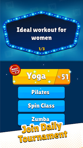 Popular Words is inspired by the TV shows such as America Says, Family Feud, and Jeopardy. You have to guess what most people say to certain questions. Each level presents a fill-in-the-blank question and five possible answers. There would be several correct answers, but you have to find the most common 5 of them whose first letters are shown to give players a hint. Blank length indicates the length of the correct word. If you like headbands games, people games and guess the word games you will enjoy this fun word trivia game too.