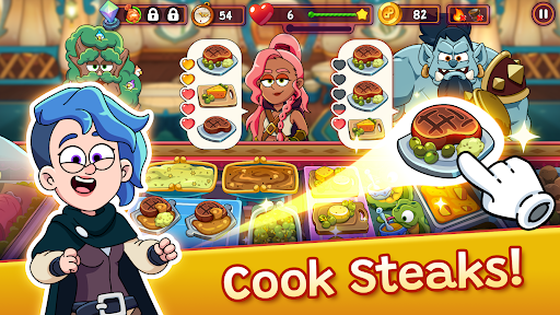 You will Meet and collect loyal customers along your way. Throw fun gacha parties and magical feasts to attract new customers from every corner of the kingdom. Meet every type of fantasy character, from brave knights to powerful gods, to snarly goblins, and many more. Complete limited time events to collect skins, outfits, and costumes. Manage the madness in the kitchen by harnessing the power of heroes who can tame dragons, wield ice magic, or even control time.