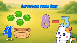 This free kids game will help build the basic math skills for toddlers, which is a foundation for school math curriculum. And the best part is that its fun to learn - because of the cute animals, beautiful animation, cartoon sounds, positive encouragement. The young child will learn to count numbers, add numbers, subtract numbers, and many more basic math skills. Suitable for first & 2nd grade boys and girls.