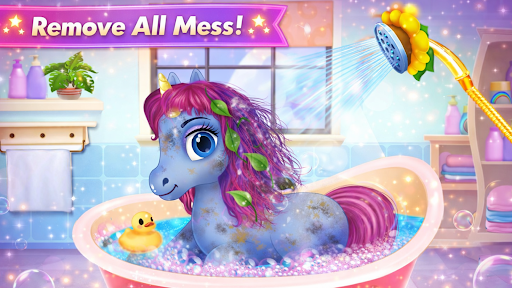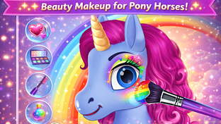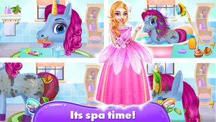 Take your pet to a baby unicorn salon and give your unicorn a lil makeup and hair styles and check out your creative skills. Make your unicorn different from others and become the owner of the cutest unicorn in the world. Don't forget to feed your pet. Feed him some fruits and rainbow cakes and snacks. Play with your pet to make him happy and cheerful in the castle. Take a photograph of your pet to save the memories of your with your cutest pet in a magical world. Collect the surprises too.