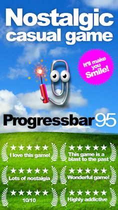Step into the world of nostalgia with Progressbar95, an original computer simulation game now available on your mobile device. The game features old visual designs, buttons, and icons that will take you back in time and leave a smile on your face. The goal of the game is simple: fill the progress bar using one finger control and avoid tricky pop-ups and destructive segments that will slow you down. However, as you progress through the game, it becomes harder to master.