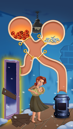 The wife was living happily with her husband and her son but suddenly, everything changed after one night. The husband betrayed the family, now the wife has no money and no home. She and her child have to survive through the cold winter.Help her by pulling the pins.