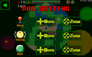 Right-bottom pad is used to rotate tank turret, and to shoot charge-shot.