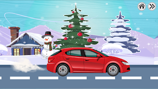 The game includes 39 slides with a picture of a car, divided into 8 parts, of which 2 pieces are made in the form of a number, a letter of the English alphabet, an animal or a transport vehicle.