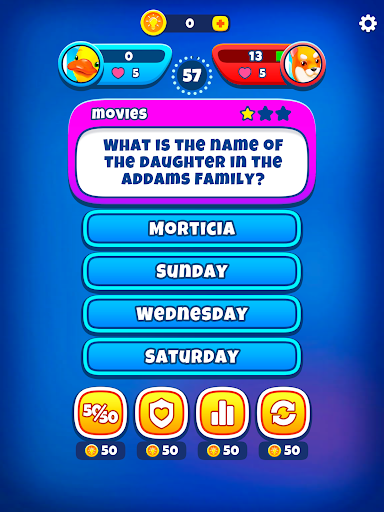 In addition to experience points, for a series of wins you will also receive coins, which you can exchange for hints and boosters. With coins, you can eliminate half of the wrong answers, replace a question, view answer statistics, or even get a second chance to answer the toughest questions and win!