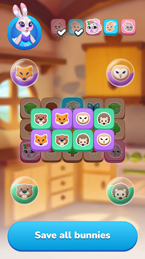 Rabbit Tiles mahjong puzzle game is an exciting Triple matching game with great graphics that develops attention, trains the brain and helps pass the time. 🧩Solve the tasks, find all the puzzles you need, and learn the exciting story of the rabbit family.