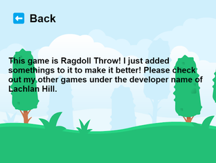 There are 3 levels because of Ragdoll Throw 3. There is now a main menu that you can select. If you win you get taken to a special room where you can press buttons! Enjoy!