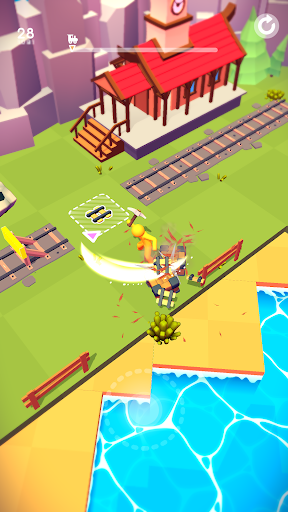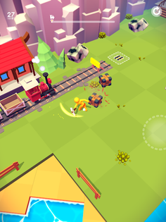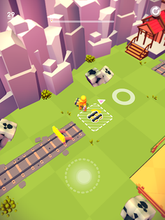Gather resources, craft a railroad and drive the train to the next station.