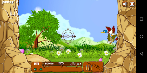 Duck shooting game with rifle is played by touching the screen.