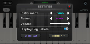 ★ You can record while playing the piano to MIDI file format. You can set the size of the piano with the plus and minus keys.