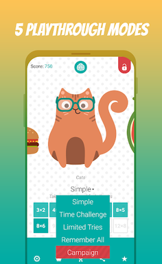 ✔ Choose from 5 different game modes including classic memory games, adventure, remember all, timeout, and limited moves