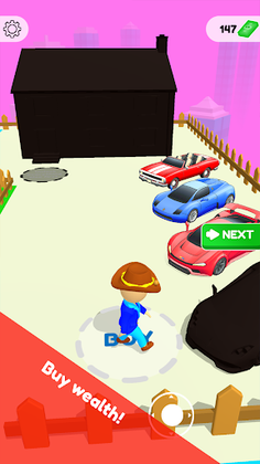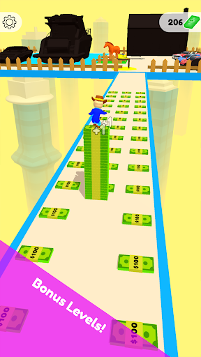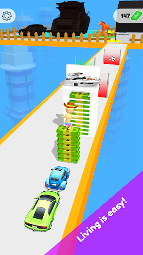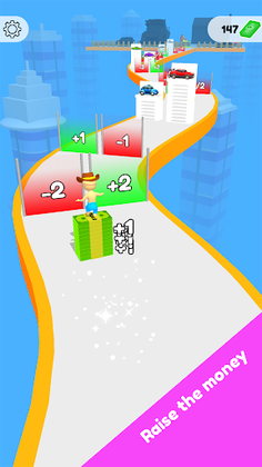 Drag the hero to collect money and get goods along the way.